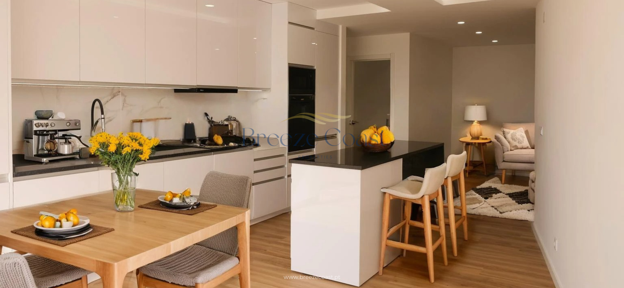 ✔ Open space kitchen and living room, creating a modern and cozy environment.