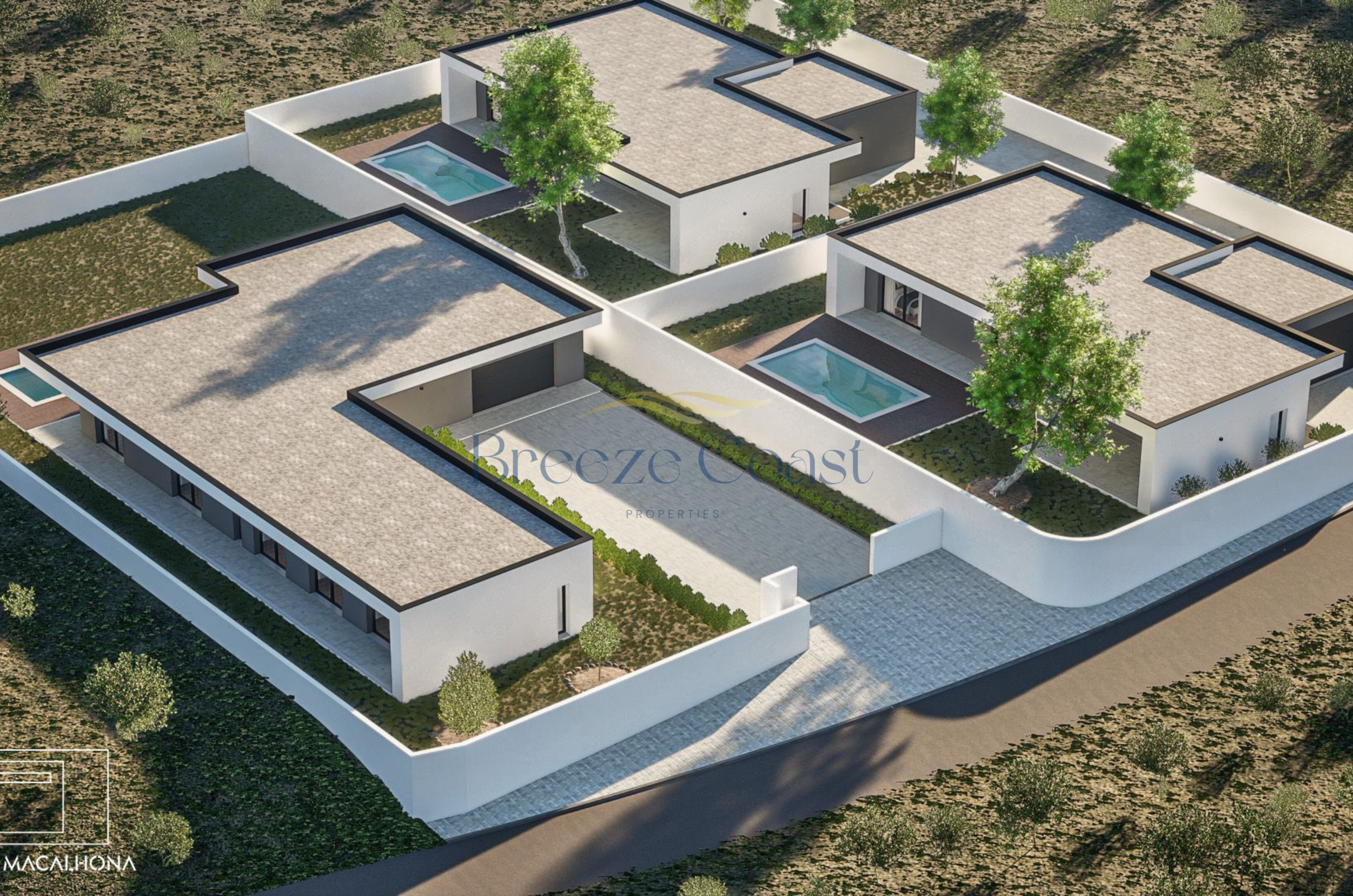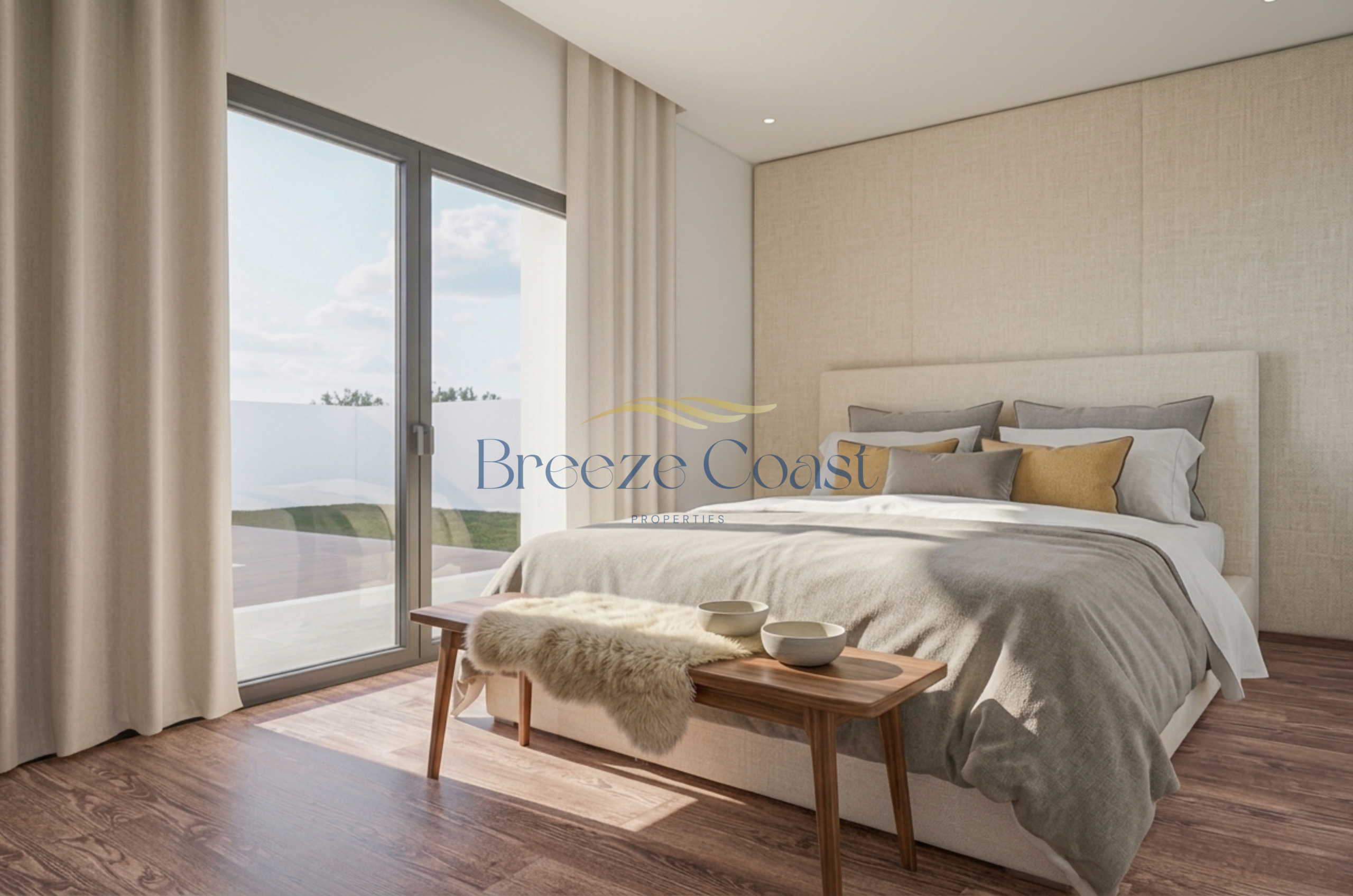 The master suite includes a well-lit walk-in closet, while the two additional bedrooms have built-in wardrobes, ideal for a family or a home office.